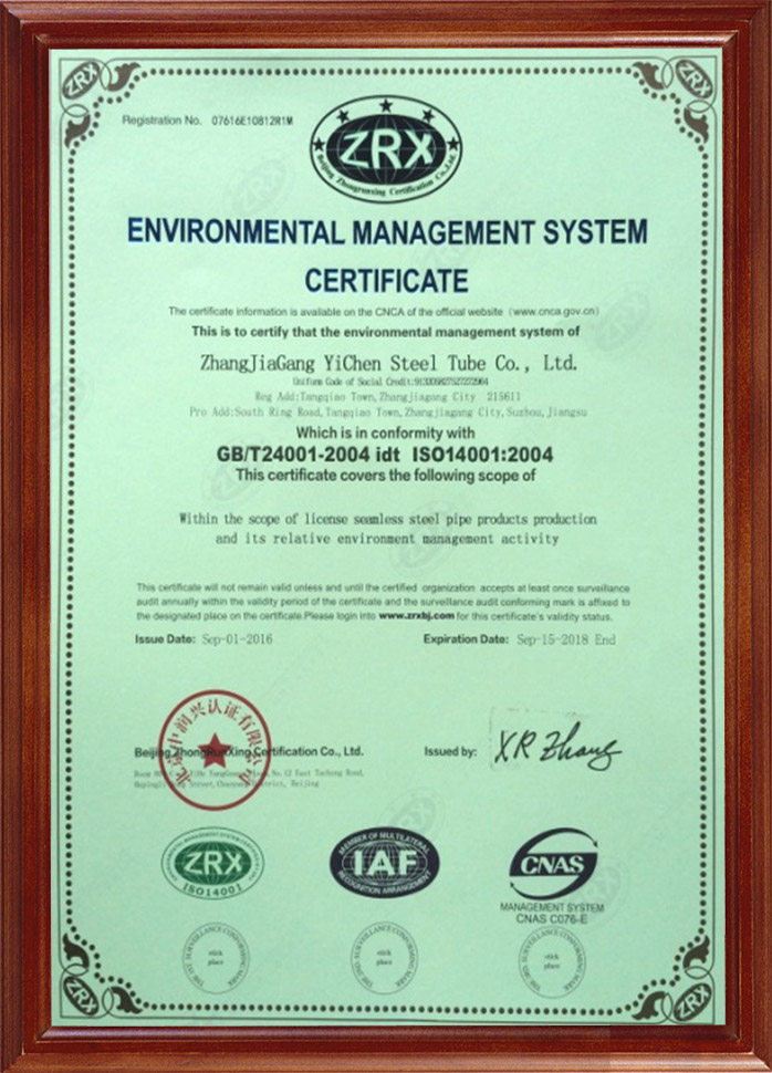 環(huán)境管理體系認(rèn)證證書